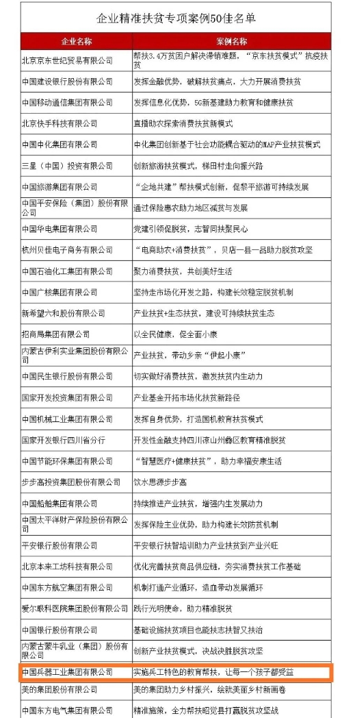 兵器工業(yè)集團教育扶貧獲評國務院扶貧辦2020年企業(yè)精準扶貧專項案例“50佳” |