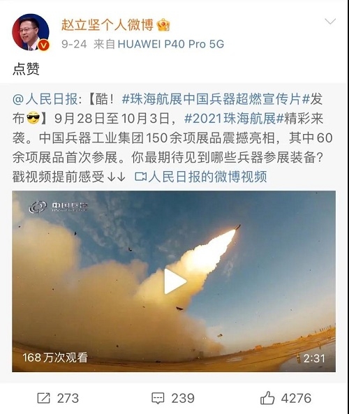 人民日報(bào)、新華社、中國日報(bào)、共青團(tuán)中央、國資小新、騰訊軍事、鳳凰軍事、新浪軍事等新媒體發(fā)布的集團(tuán)公司航展宣傳片等視頻作品燃爆全網(wǎng),閱讀量突破三千萬人次,得到外交部發(fā)言人趙立堅(jiān)轉(zhuǎn)載點(diǎn)贊。集團(tuán)公司微信、微博、抖音號、微信視頻號等新媒體宣傳片播放閱讀量超過400萬人次。同時(shí),央視新聞、新華社、中國之聲、央視軍事、央視新媒體、解放軍報(bào)、共青團(tuán)中央、國資小新、環(huán)球時(shí)報(bào)等多家媒體對集團(tuán)公司靜、動態(tài)展區(qū)進(jìn)行現(xiàn)場直播,在電視端、客戶端、微信視頻號、微博、B站、快手、抖音等平臺受到高度關(guān)注。著名軍事專家杜文龍、央視主持人顧國寧、央廣中國之聲主持人王藝等直播兵器館、動態(tài)表演區(qū)裝備。 《參考消息》、新華網(wǎng)、央廣網(wǎng)、中國日報(bào)、科技日報(bào)、解放軍報(bào)、人民網(wǎng)、中國新聞網(wǎng)、中國青年網(wǎng)、中國網(wǎng)、中工網(wǎng)、央視網(wǎng)、環(huán)球網(wǎng)、騰訊網(wǎng)、新浪網(wǎng)、鳳凰網(wǎng)、搜狐網(wǎng)、網(wǎng)易網(wǎng)、今日頭條等中央主流媒體和知名網(wǎng)絡(luò)媒體以及南方日報(bào)、廣東電視臺、北京電視臺、新京報(bào)、珠海傳媒集團(tuán)、深圳衛(wèi)視等省市媒體對集團(tuán)公司參展情況進(jìn)行了圖片、文字、視頻報(bào)道。 航展期間,備受關(guān)注的中國兵器館,參觀的觀眾絡(luò)繹不絕。 |