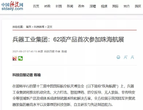 兵器工業(yè)集團(tuán)參展第十三屆中國航展受到社會廣泛關(guān)注 |