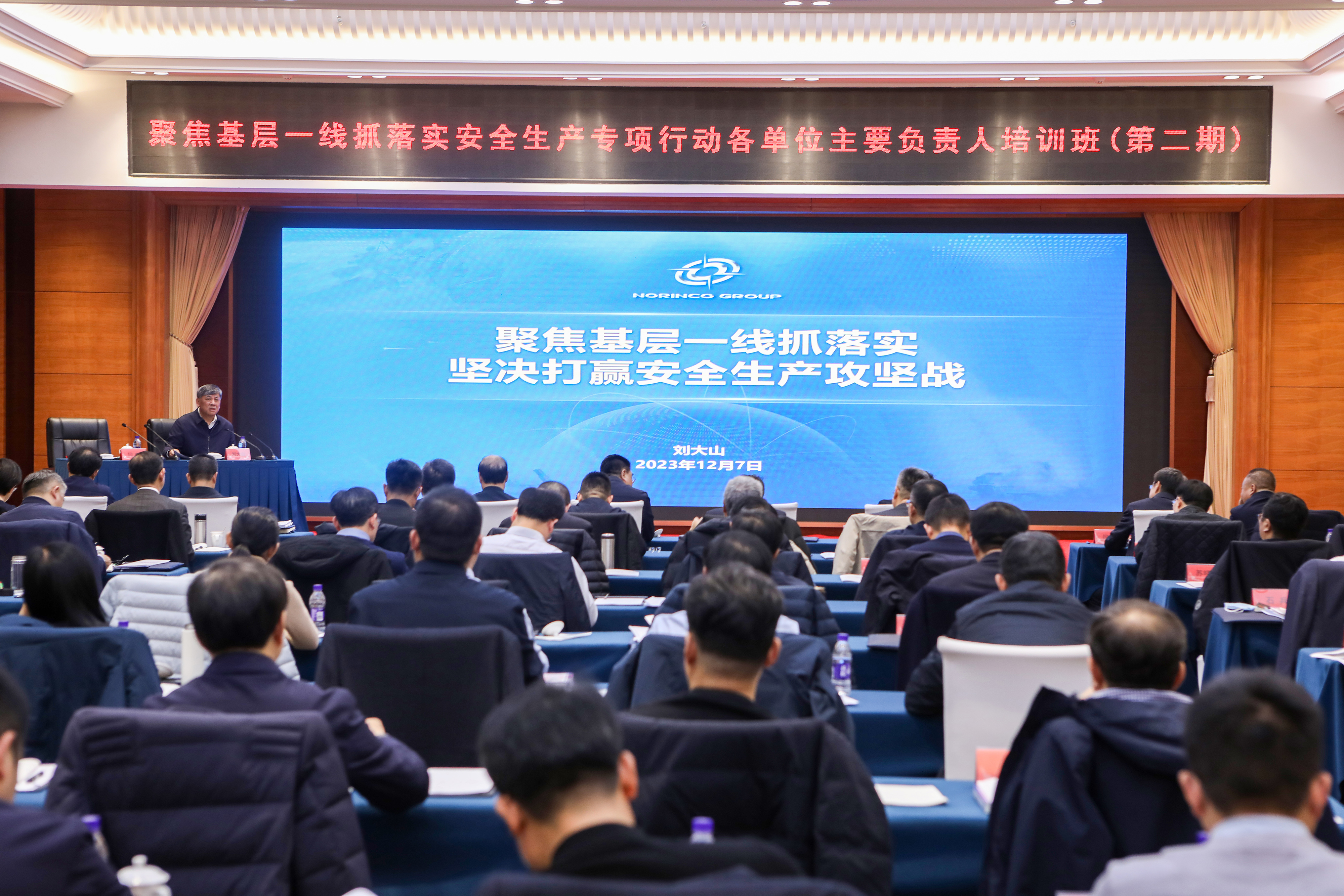 12月7日-8日,中國兵器工業(yè)集團有限公司在北京舉辦聚焦基層一線抓落實安全生產專項行動主要負責人專題培訓班(第二期),深入學習貫徹習近平總書記關于安全生產重要論述和重要指示批示精神,認真落實中央巡視關于安全生產的反饋意見,貫徹落實集團公司關于聚焦基層一線抓落實安全生產專項行動部署要求,通過工作解讀、安全履職、交流研討等模塊培訓,進一步增強各級領導聚焦基層一線抓落實的政治自覺思想自覺行動自覺,堅決打贏安全生產攻堅戰(zhàn),筑牢集團公司高質量發(fā)展的安全基石。集團公司總經理、黨組副書記劉大山出席培訓班開班式并作專題授課,黨組成員、總會計師張華,黨組成員、副總經理鄒文超、植玉林、閆哲出席開班式,閆哲主持。
